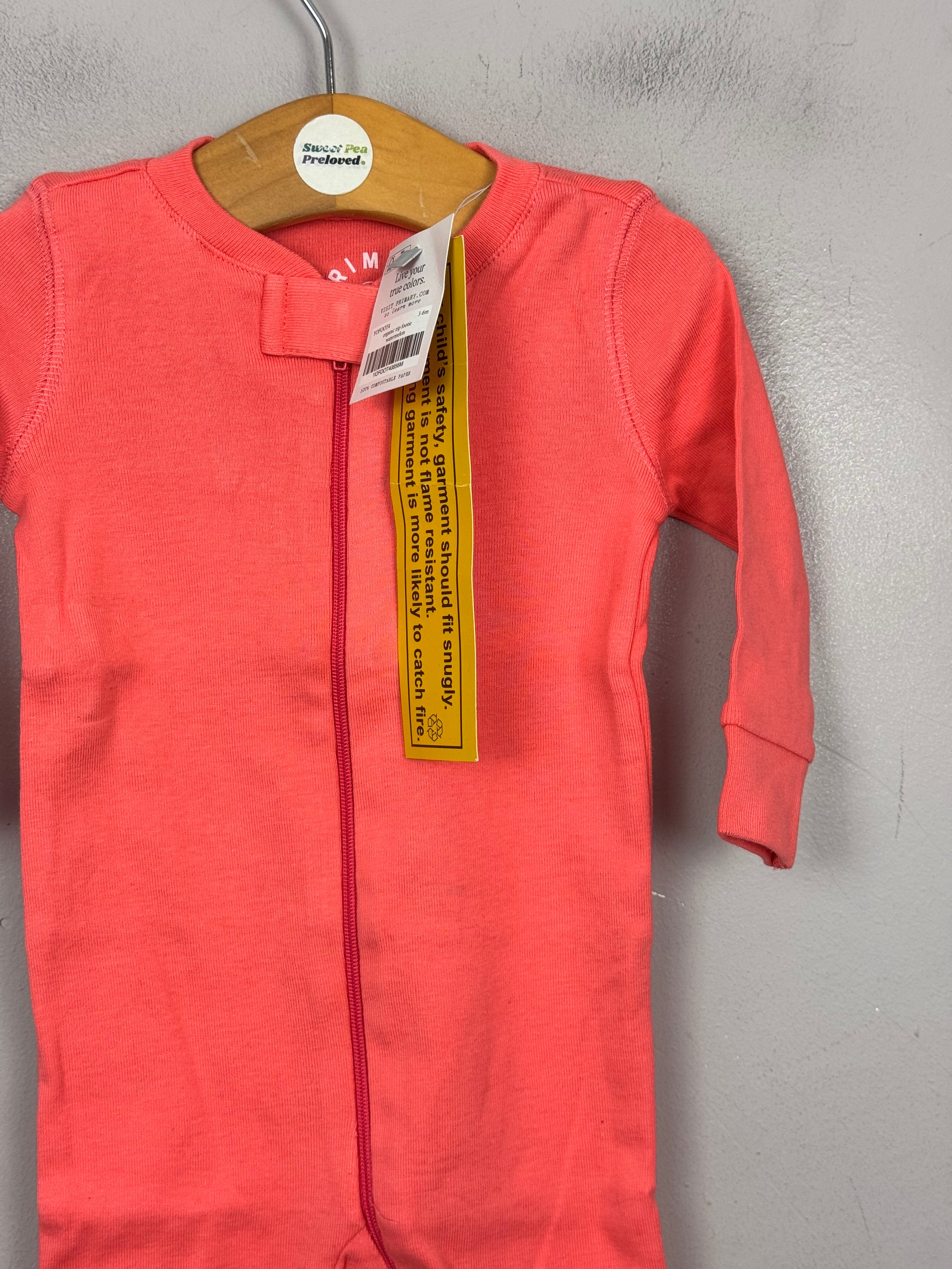 Primary Organic Sleepsuit - Plain dye, Canteloupe (New) 3-6m, 12-18m
