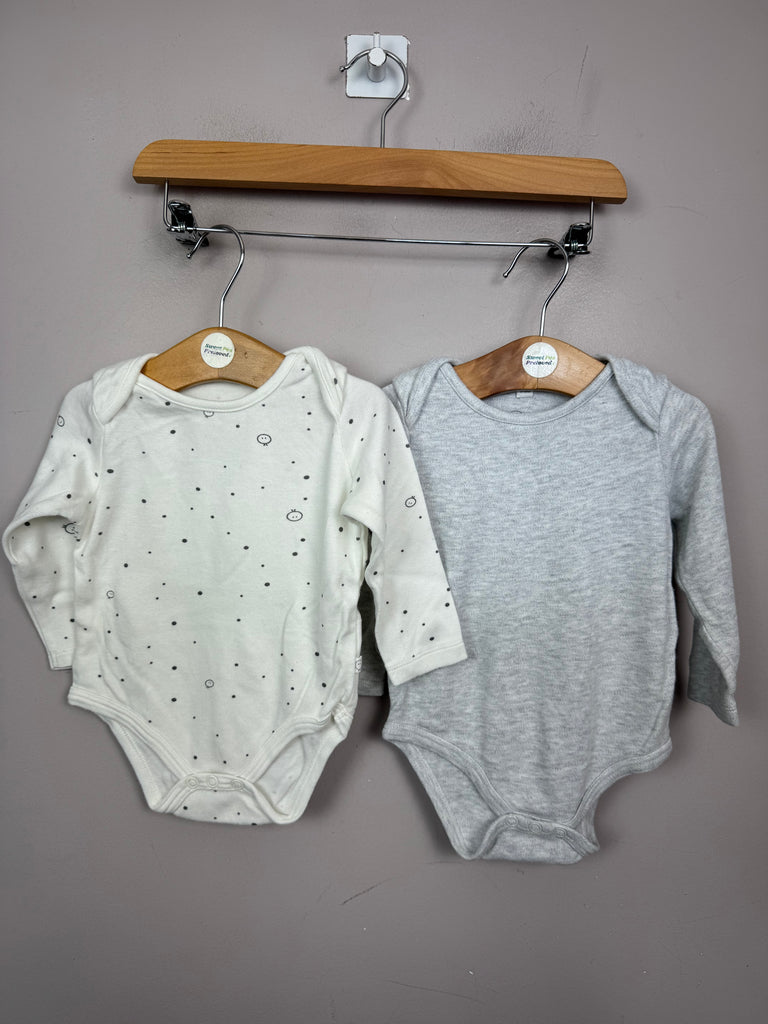 Mori 2pk Grey/Patterned L/S Bodysuits 6-9m