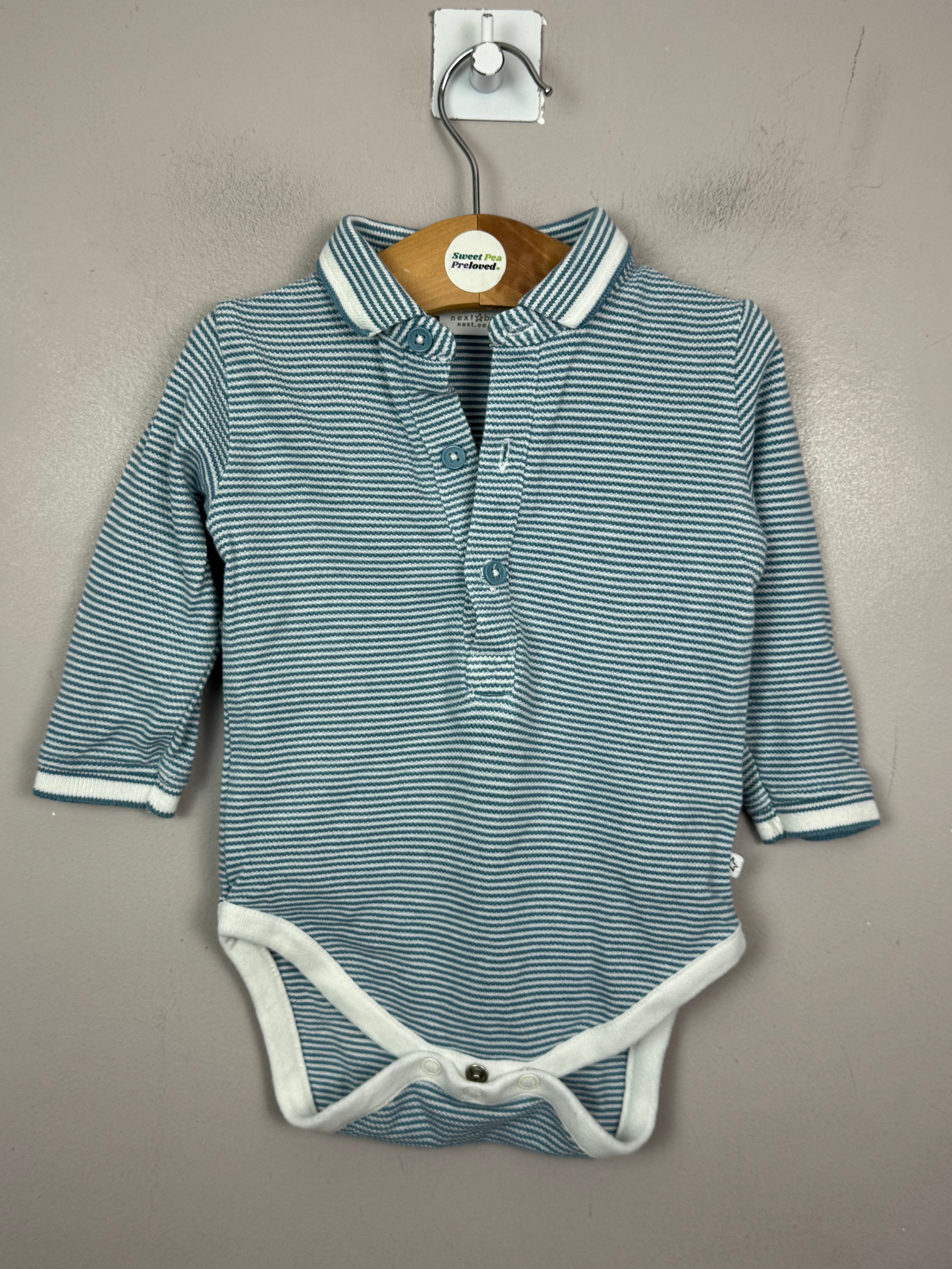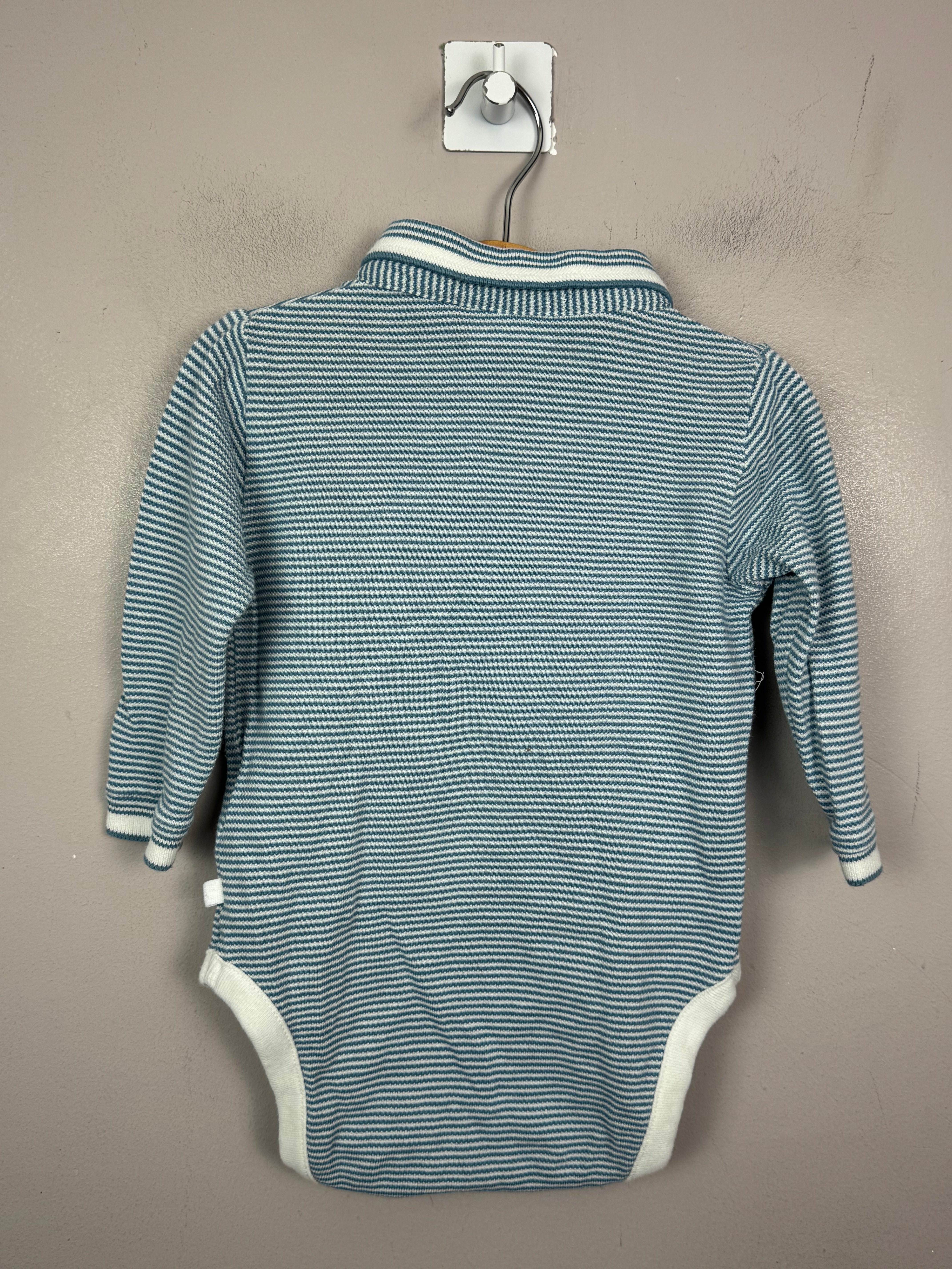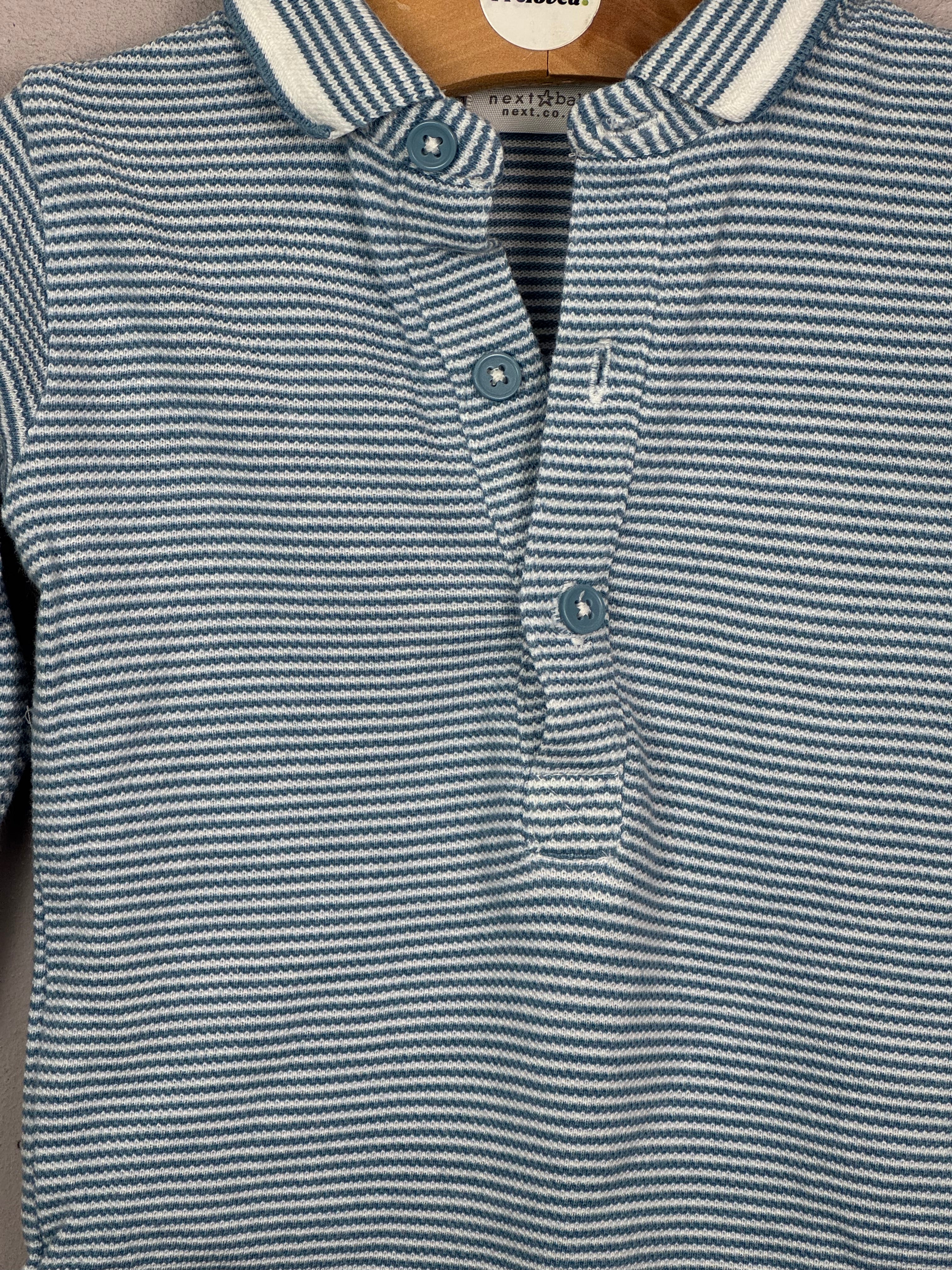Next Blue stripe polo bodysuit 3-6m is backordered and will ship as soon as it is back in stock.
