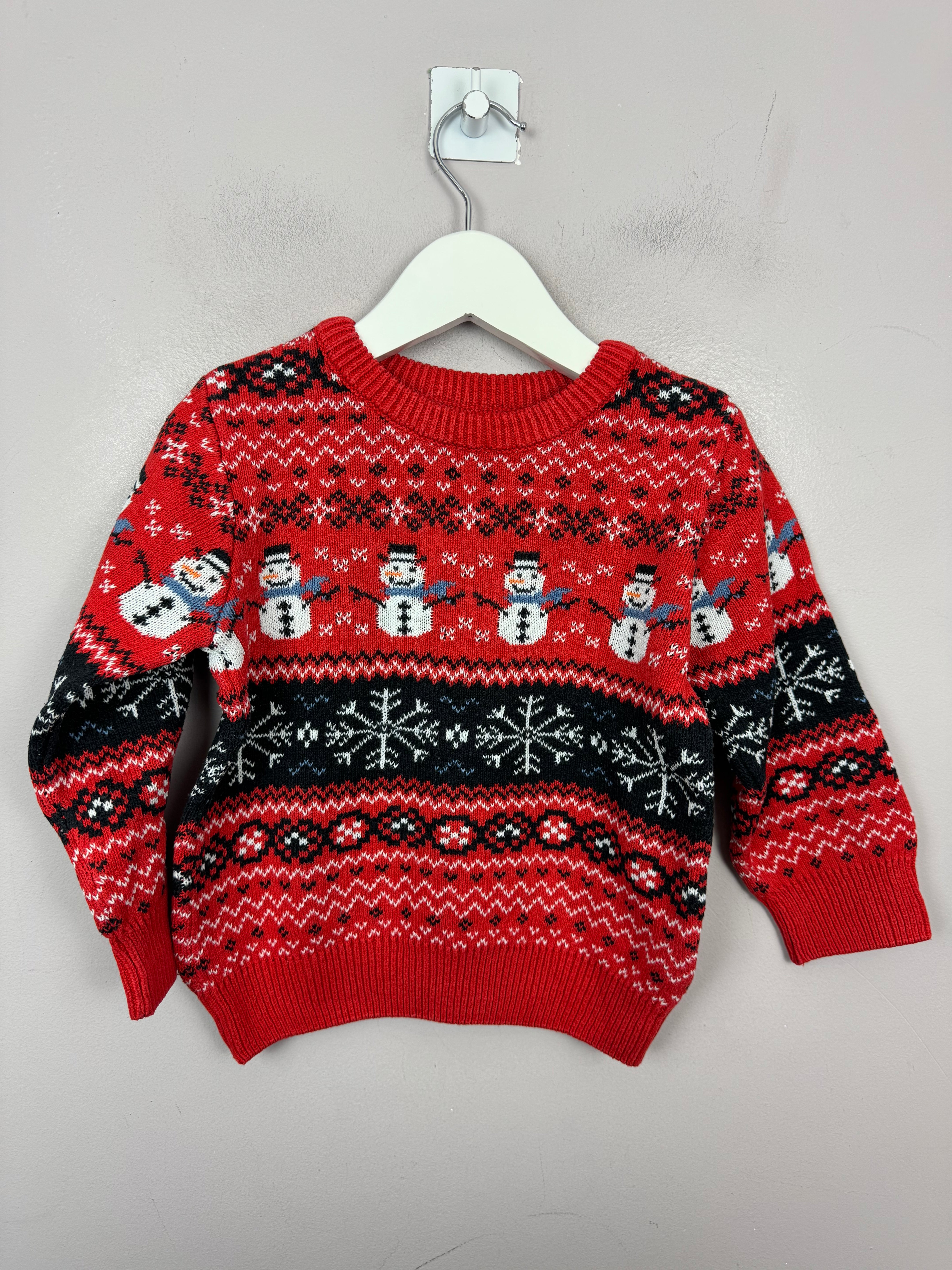 Next Red Snowman Fair Isle Jumper 2-3y