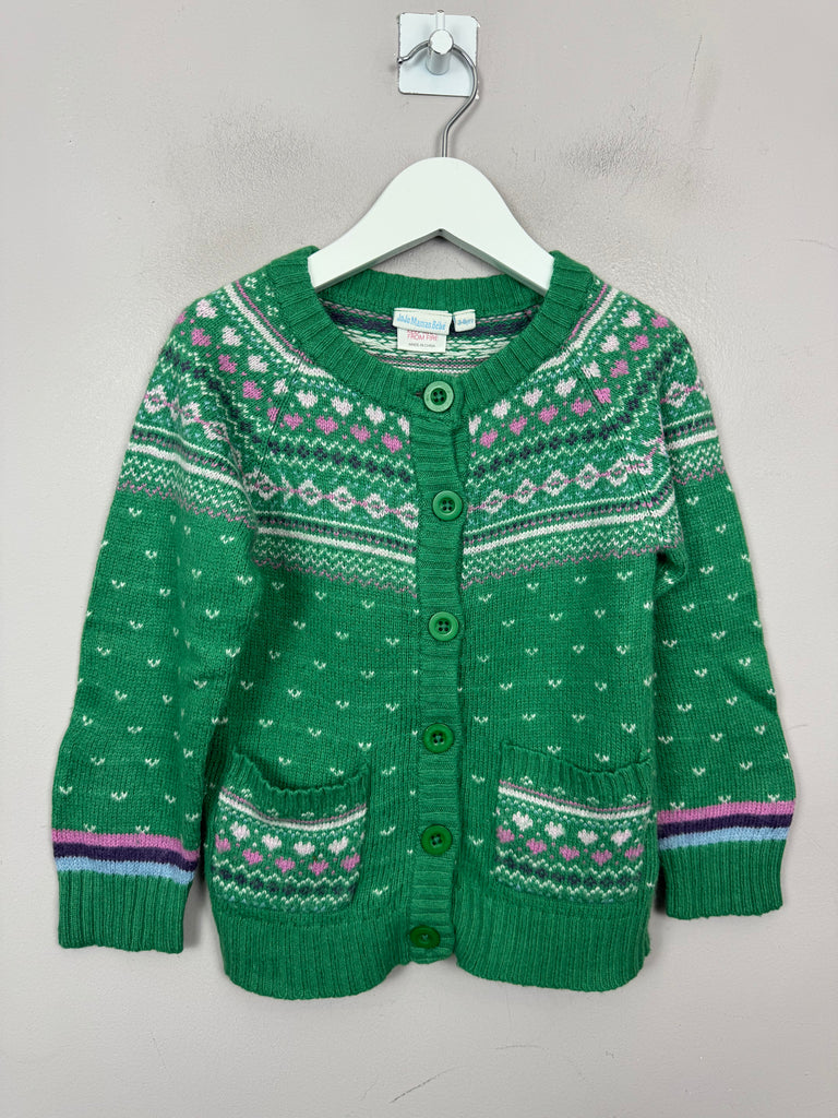 Jojo Maman Bebe Green Fair Isle Cardigan 3-4y
