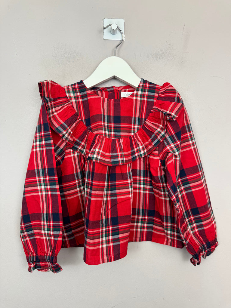 Next red tartan ruffle blouse 4y
